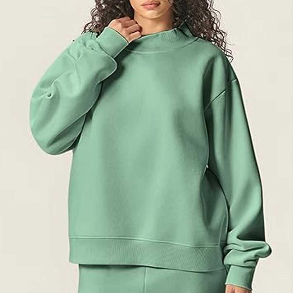 เสื้อสเวตเชิ้ตคอเต่าโอเวอร์ไซส์สำหรับผู้หญิง ผ้าฝ้ายฟลีซ 100% สไตล์สตรีทแวร์ สำหรับฤดูใบไม้ร่วงและฤดูหนาว แขนยาว ดีไซน์มีซับใน
