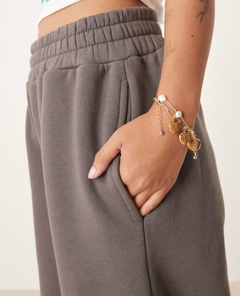 DTG กางเกงสเวตเตอร์ลำลองโอเวอร์ไซส์สำหรับผู้หญิงกางเกงขากว้างพิมพ์โลโก้ได้ตามต้องการตกแต่งด้วยลูกไม้