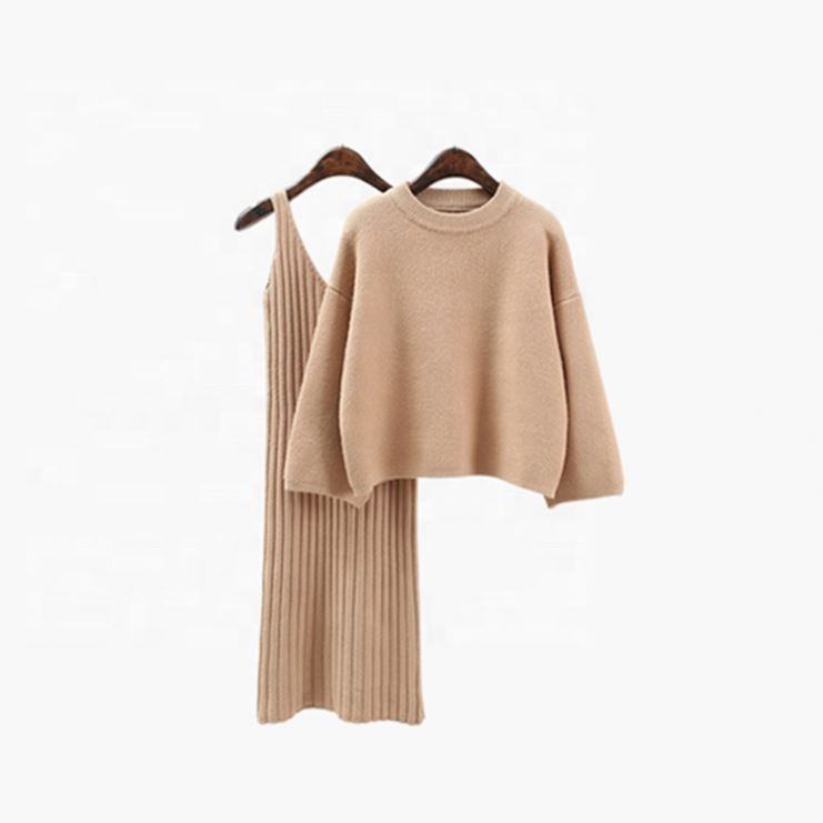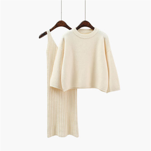 ชุดเดรสไหมพรมลำลองสำหรับผู้หญิง สีพื้น สองชิ้น ระบายอากาศได้ดี ชุดเดรสยาวทรงหลวม พร้อมโลโก้ด้านหน้า