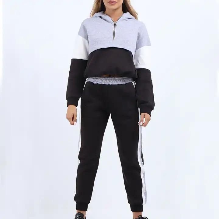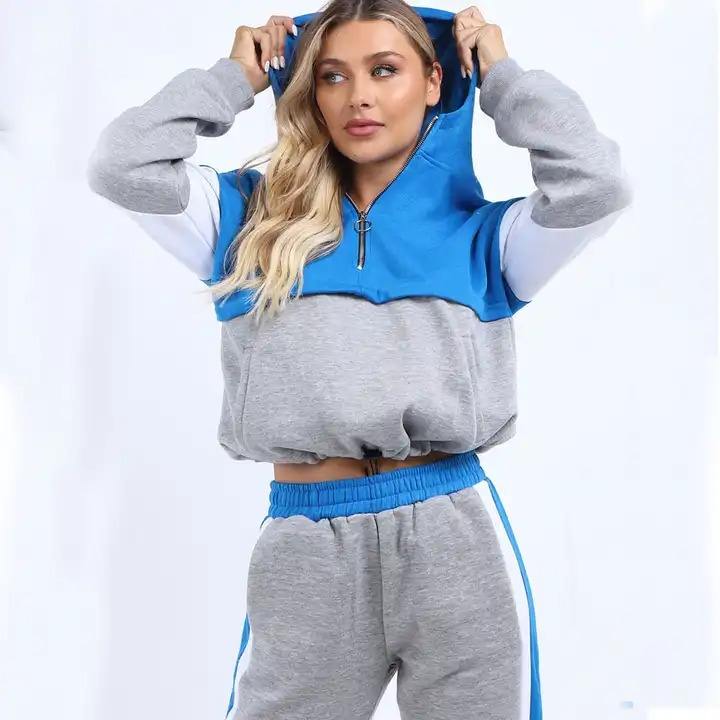 ชุดเสื้อผ้าฤดูหนาวของผู้หญิงชุดวอร์มสองชิ้นมีฮู้ดผ้าฟลีซผ้าฝ้าย100% โลโก้ที่กำหนดเอง