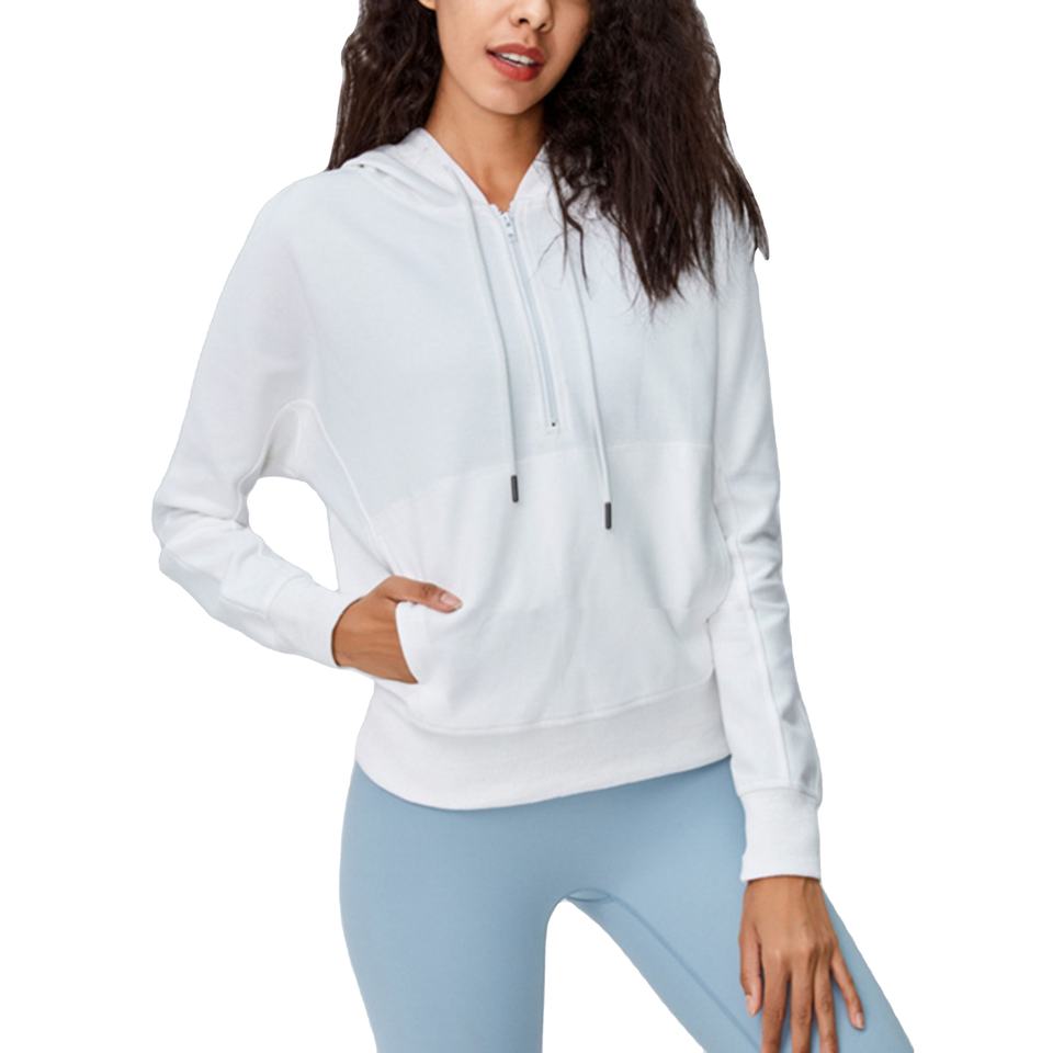 เสื้อฮู้ดครอปท็อปสำหรับผู้หญิง ฤดูหนาว แบบ OEM พร้อมซิป แขนยาว ดีไซน์เรียบ สำหรับสกรีนโลโก้ตามสั่ง