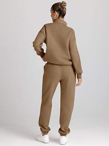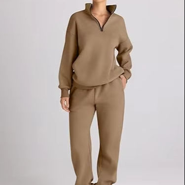 ชุดวอร์มผู้หญิง เสื้อฮัลฟ์ซิป และกางเกงวอร์มทรงหลวมมีกระเป๋า