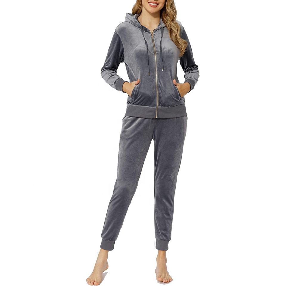 ชุดวอร์มผู้หญิงแบบสองชิ้นทรงเข้ารูป ขาบาน ผ้ากำมะหยี่เนื้อนุ่ม พร้อมคุณสมบัติผ้าฝ้ายสั่งทำพิเศษ ป้องกันแบคทีเรีย และแห้งเร็ว