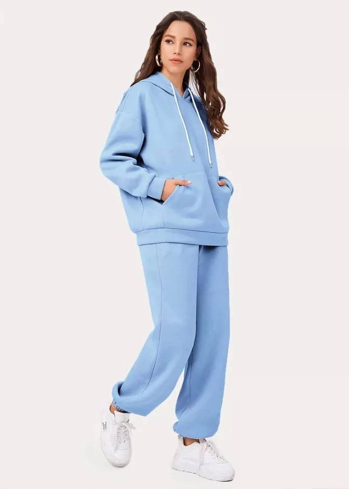 ชุดวอร์มสองชิ้นกีฬาขนแกะสำหรับผู้หญิงสำหรับฤดูหนาวกางเกงจ๊อกกิ้งแบบลำลองลายพื้นเป็นมิตรกับคุณแม่