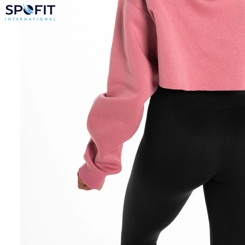 เสื้อครอปมีฮู้ดแขนยาวผ้าฟลีซผ้าฝ้าย100% สำหรับสตรีทแวร์แห้งเร็วระบายอากาศได้ดีสำหรับฤดูหนาว