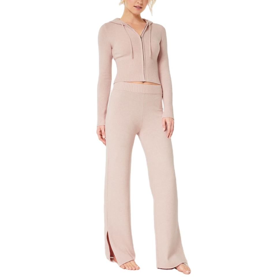 ชุดวอร์มพิมพ์ลายสำหรับผู้หญิงช่วงฤดูหนาว กางเกงขายาวเอวสูงแบบสองชิ้น และเสื้อฮู้ดครอป ชุดวอร์มแบบมีฮู้ดสองชิ้น