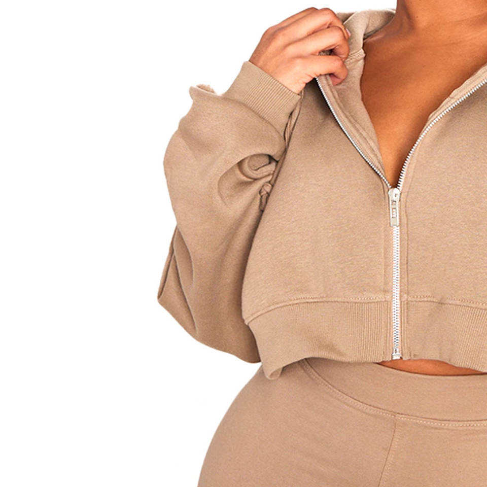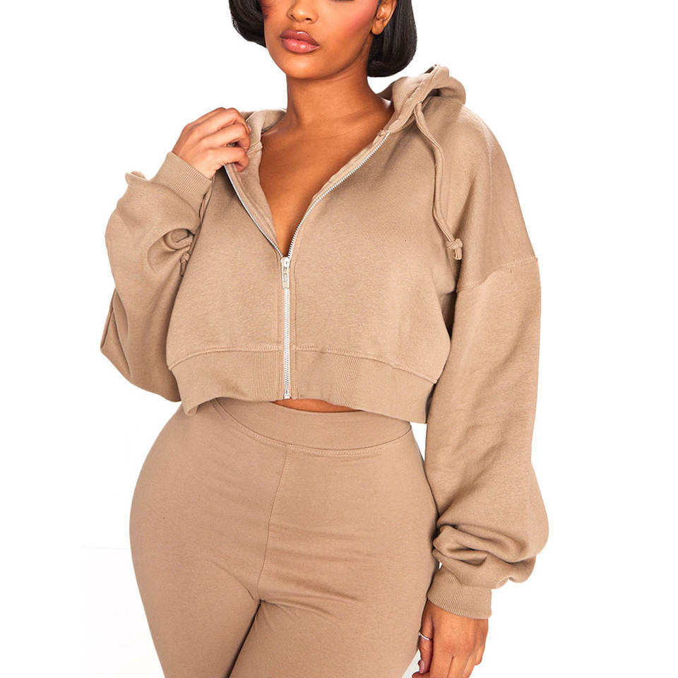 เสื้อครอปฮู้ดดี้แขนยาวพิมพ์ลายสีพื้นสำหรับผู้หญิง ผลิตตามสั่ง ผ้าฝ้าย 100%