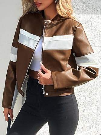 เสื้อแจ็คเก็ตมอเตอร์ไซค์สำหรับผู้หญิง ฤดูหนาว แบบปกติ หนังแกะเทียม ระบายอากาศได้ดี ปิดด้วยซิป วิธีการทอผ้าแบบไม่ถักทอ ด้านหน้า