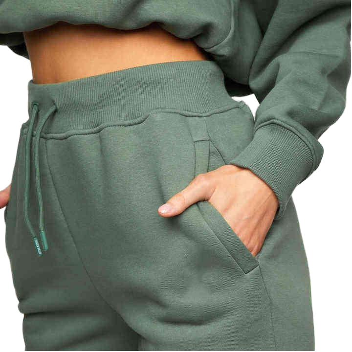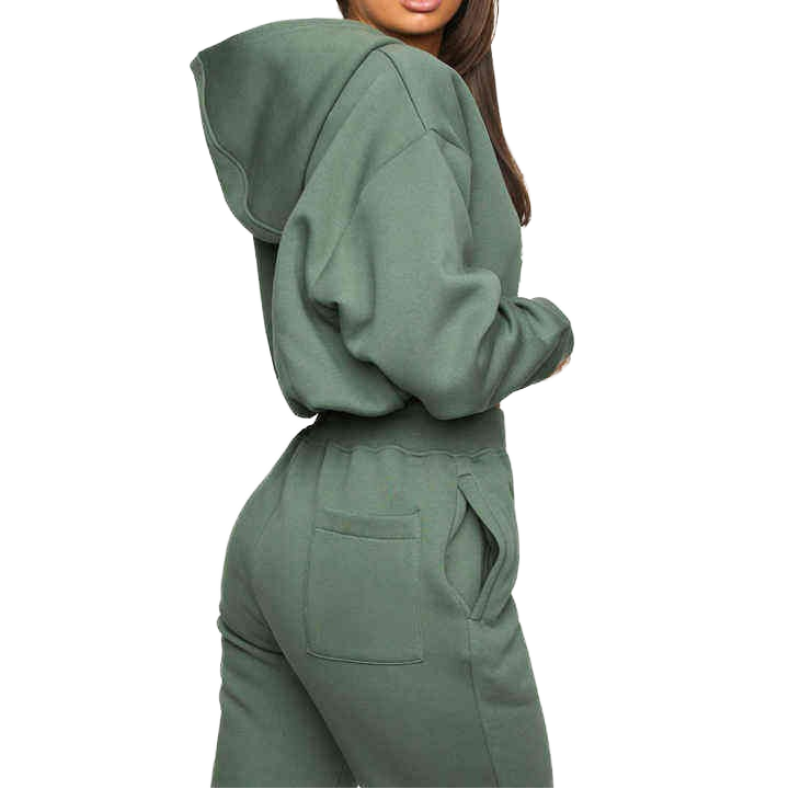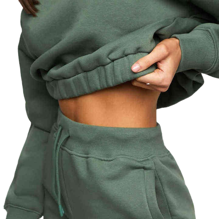 ชุดวอร์มผู้หญิงสำหรับฤดูหนาว ผ้าโพลีเอสเตอร์/คอตตอน ทรงขาบาน แต่งลายปักแบบดิสเทรส ล้างสีแบบแอซิดวอช พร้อมฮู้ด