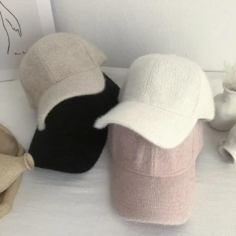 Women's Winter Solid Color Baseball Cap with Visor Warm White Black Hair Cap for Outdoor Travel Casual Use