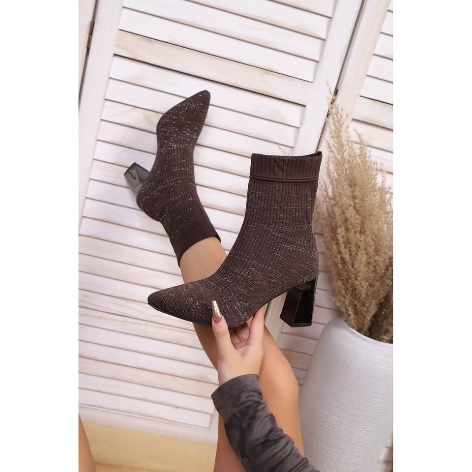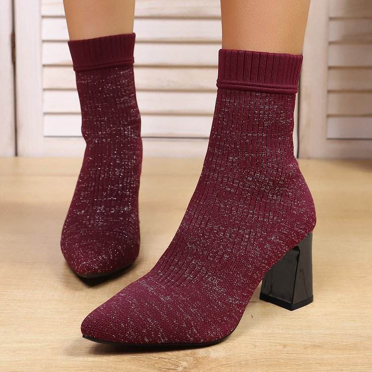 รองเท้าบูทยางส้นหนาสำหรับผู้หญิง แบบเปิดนิ้วเท้า สูง 5 ซม. สวมแบบสลิปออน ดีไซน์ปลอกยืด สำหรับฤดูหนาวและหิมะ