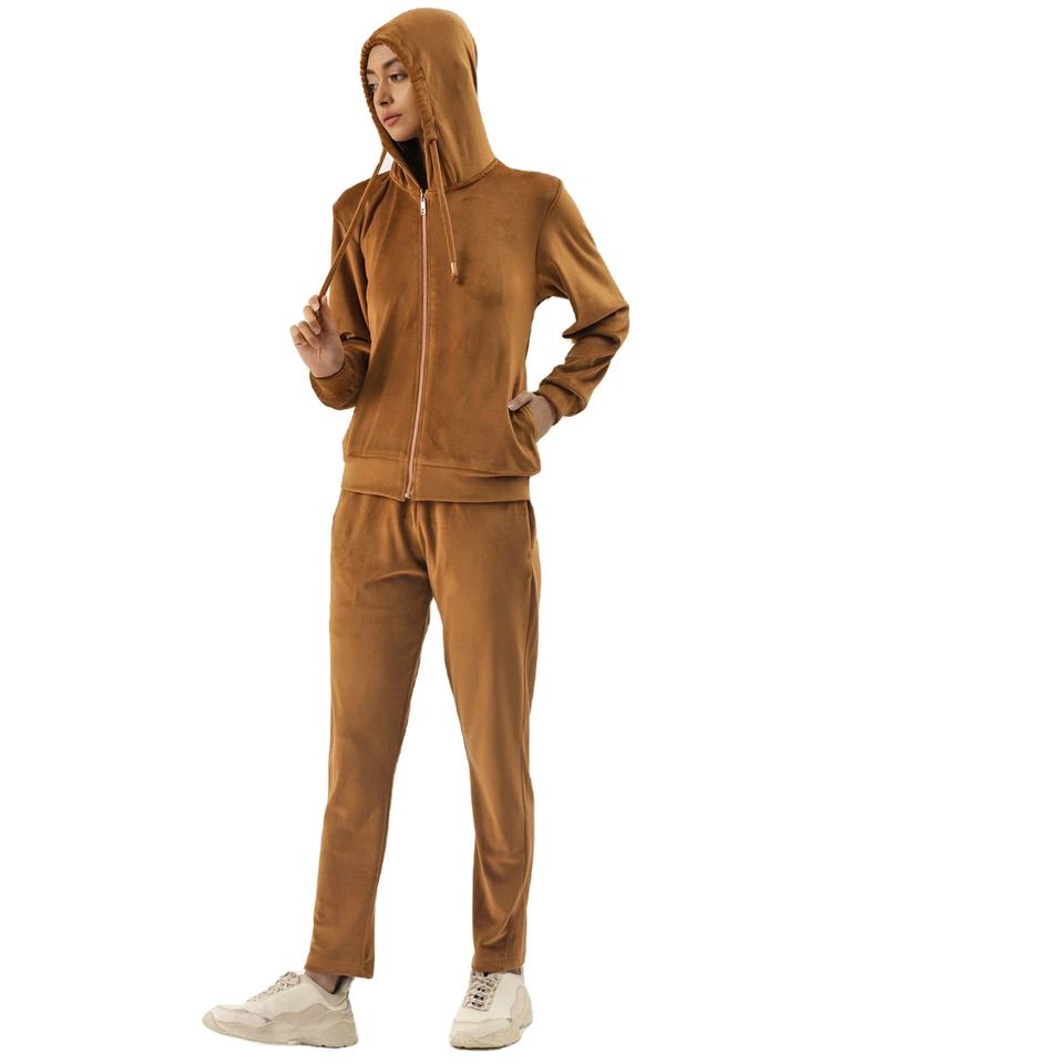 ชุดวอร์มสองชิ้นสำหรับฤดูหนาวของผู้หญิงชุดวอร์มมีซิปมีฮู้ดติดโลโก้ตามต้องการ