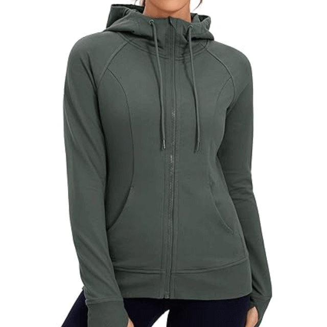 เสื้อแจ็คเก็ตมีฮู้ดสำหรับออกกำลังกายฤดูหนาวสำหรับผู้หญิง สกรีนโลโก้ได้ สีพื้น ซิป ผ้าฝ้ายฟลีซ 100% สำหรับวิ่งกลางแจ้งและออกกำลังกายในยิม