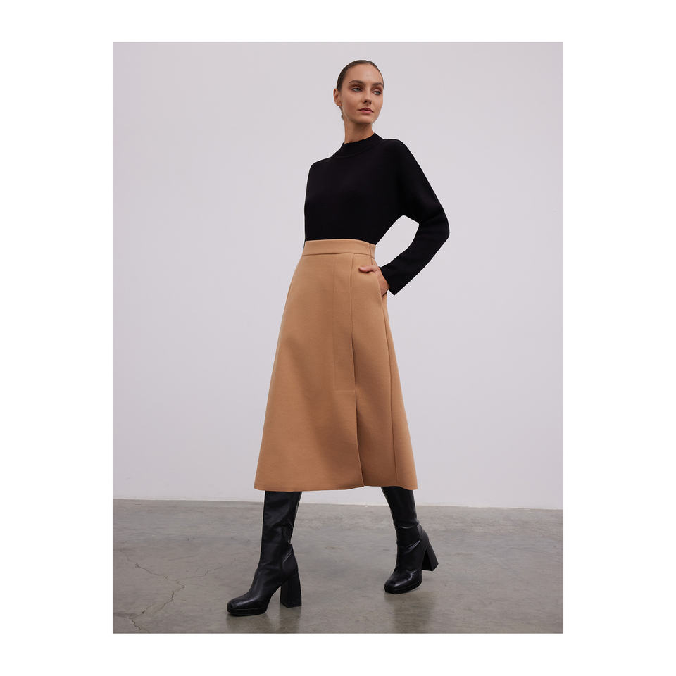 กระโปรงทรงเอผ้าวูลผสมสำหรับผู้หญิง พร้อมดีไซน์ผ่าข้าง สวมใส่สบายและเป็นแฟชั่นทันสมัย