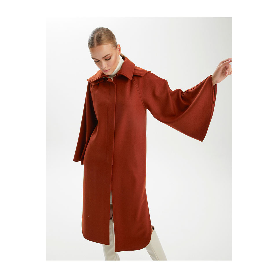 เสื้อโค้ทแขนค้างคาวมีฮู้ดผสมขนสัตว์สำหรับผู้หญิง BGN