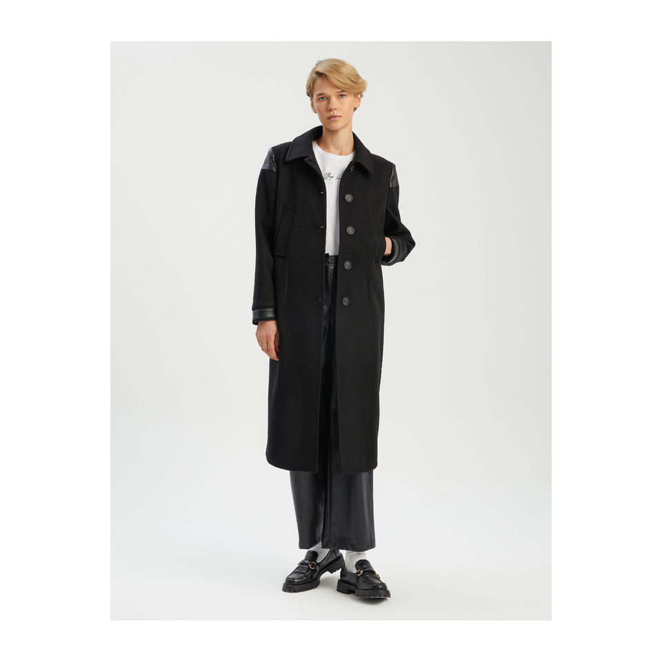 เสื้อโค้ทผ้าขนสัตว์ผสมหนังสำหรับผู้หญิง