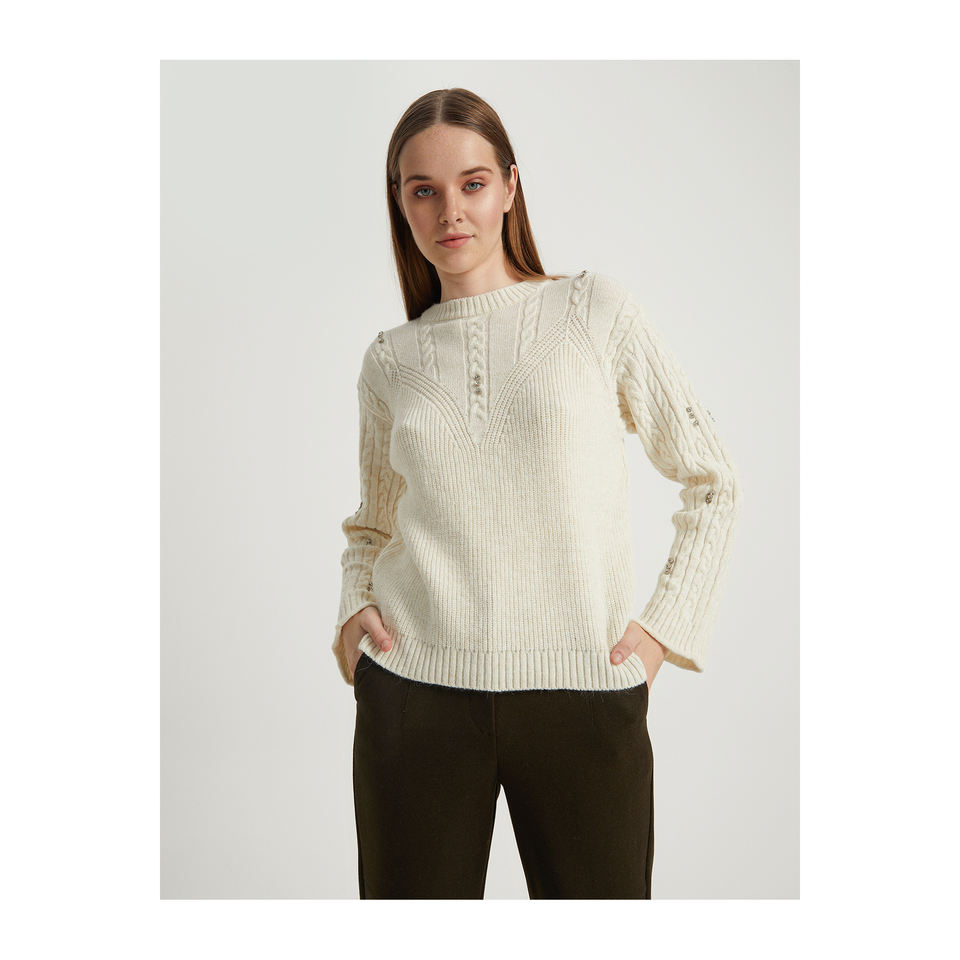 เสื้อสเวตเตอร์ปักลายหินผสมขนสัตว์สำหรับผู้หญิง BGN-Turkey W24HQ210