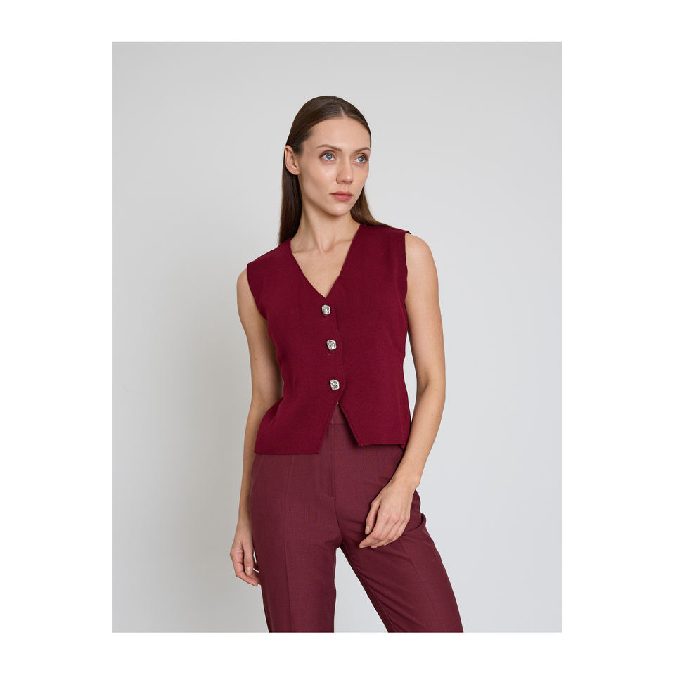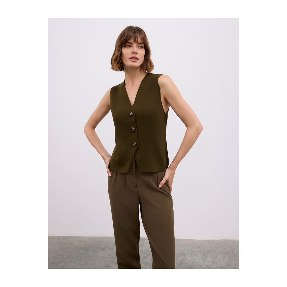 เสื้อกั๊กผ้าขนสัตว์ผสมสำหรับผู้หญิง กระดุมโลหะ ดีไซน์หรูหรา