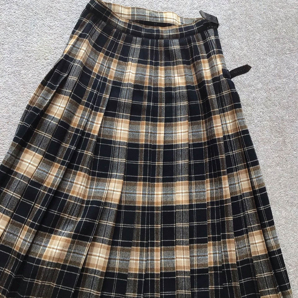 กระโปรงผ้าขนสัตว์สำหรับผู้หญิง ไซส์ 14 ลายสก็อตธอมสัน คาเมล ทาร์ทัน กระโปรงสตรีแบบดั้งเดิม