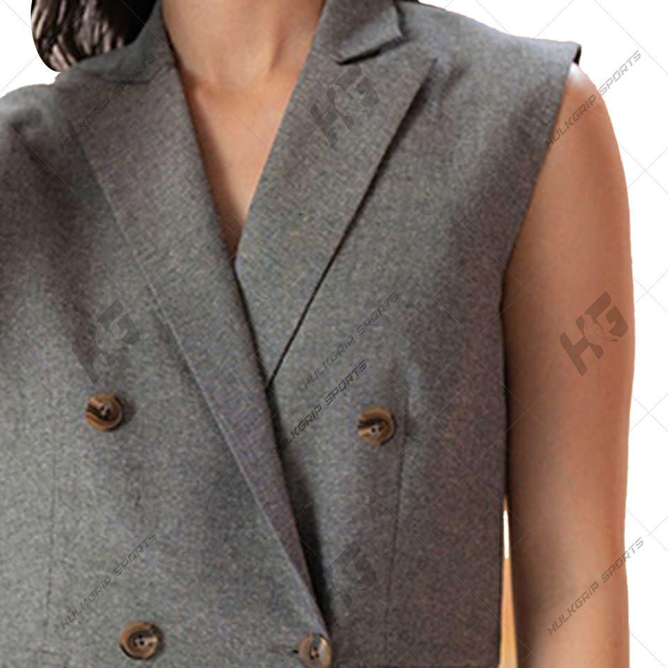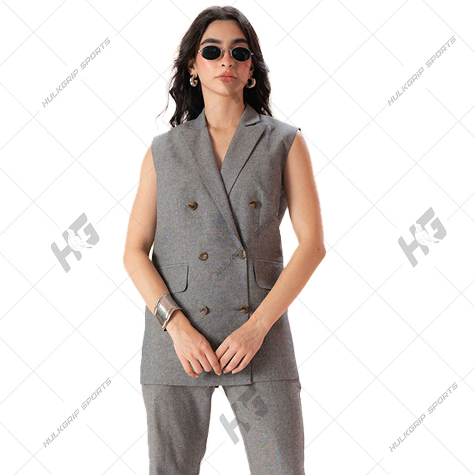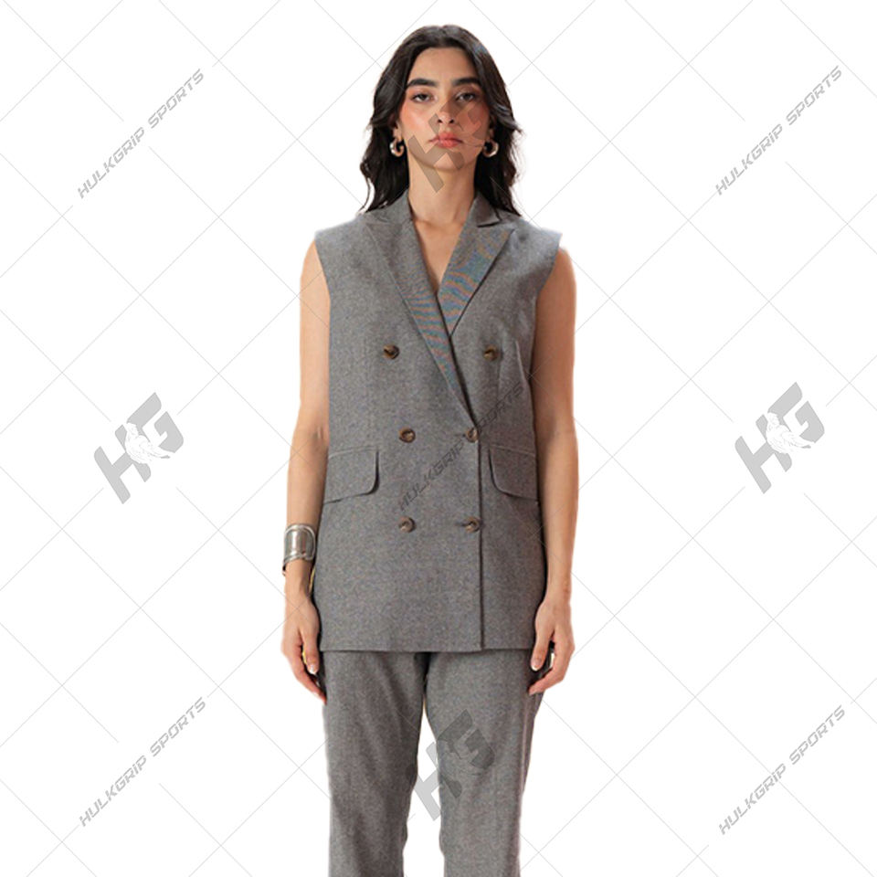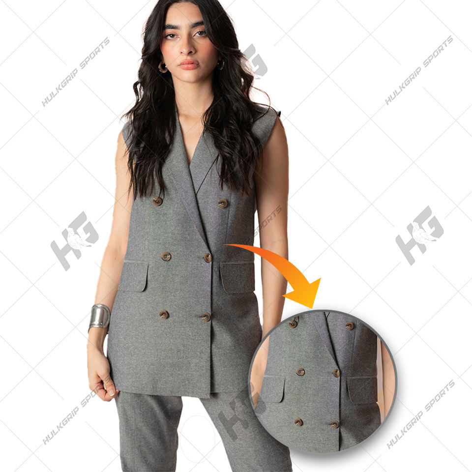 ชุดเสื้อเบลเซอร์คอวีแขนยาวทำจากผ้าขนสัตว์สำหรับผู้หญิงชุดสูทแบบธุรกิจมีกระดุมสองแถวป้องกันรอยยับและปัก3D