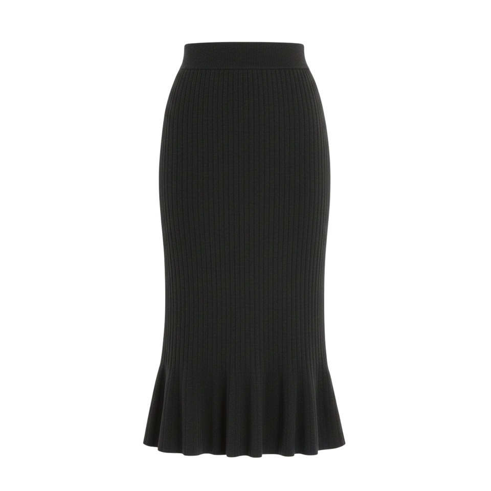 กระโปรงทรงเอเอวสูงผ้าวูลถักลายริบสำหรับผู้หญิง ความยาวปานกลาง สไตล์ลำลอง ทันสมัย เรียบง่าย ยืดหยุ่น กระชับรูปร่าง ขายส่งเสื้อผ้า