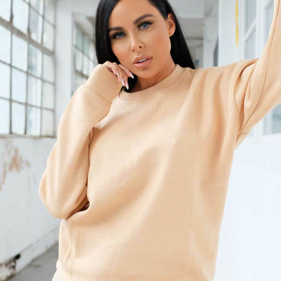 เสื้อฮู้ดการออกกำลังกายของผู้หญิงเสื้อสเวตเตอร์มีกระเป๋ายาวมีกระดุมข้อมือเสื้อมีรอยตะเข็บเย็บริมและคอกลมเสื้อโลโก้ด้านหน้า