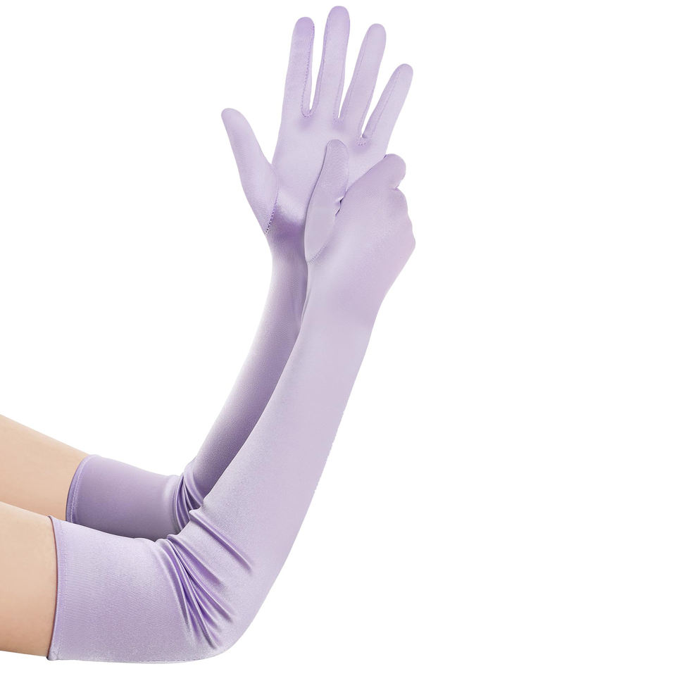 ถุงมือผ้าซาตินยาวถึงข้อมือสำหรับผู้หญิง คุณภาพสูง โพลีเอสเตอร์ คลาสสิก สง่างาม สไตล์วินเทจใหม่ สำหรับงานปาร์ตี้ งานแต่งงาน และงานอีเว้นท์