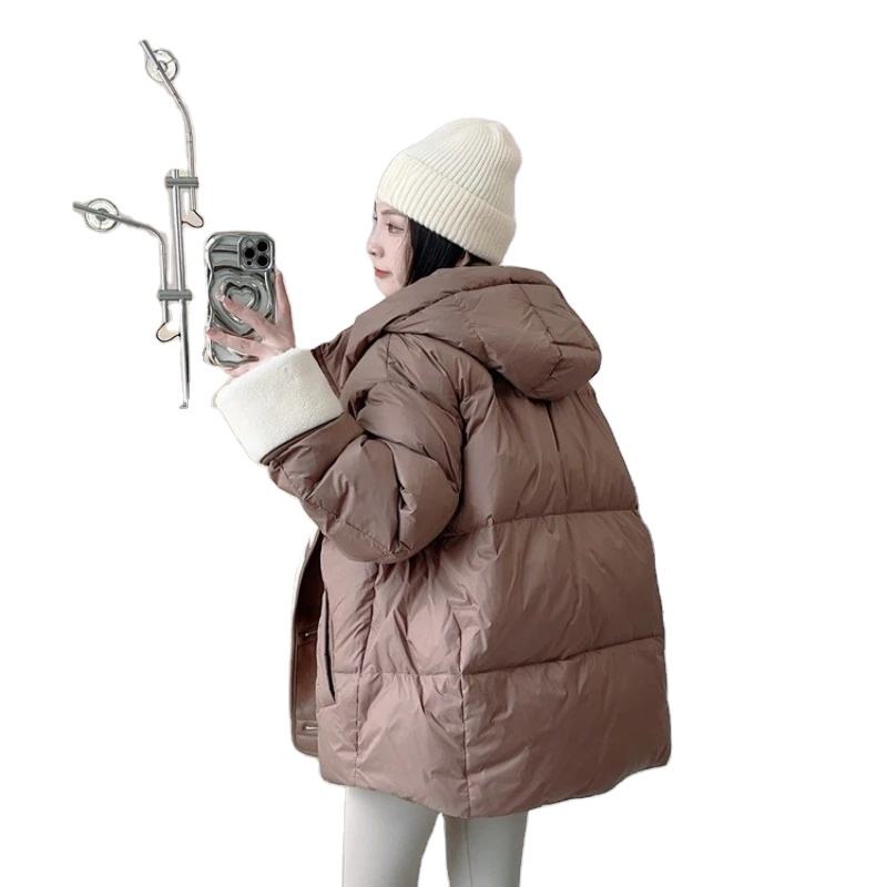 เสื้อแจ็กเก็ตปกขนแกะไซส์ใหญ่พิเศษของผู้หญิงเสื้อคลุมตัวสั้นสไตล์เกาหลีพิมพ์ลายผ้าขนแกะสำหรับฤดูหนาว