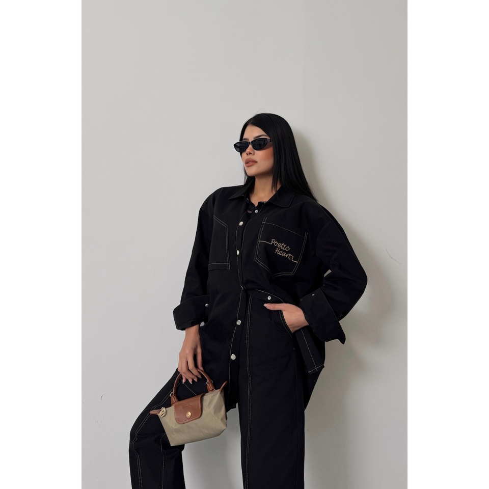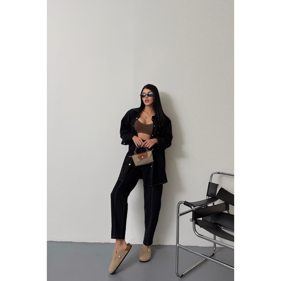 ชุดเสื้อและกางเกงยีนส์สีเหลืองสำหรับผู้หญิง