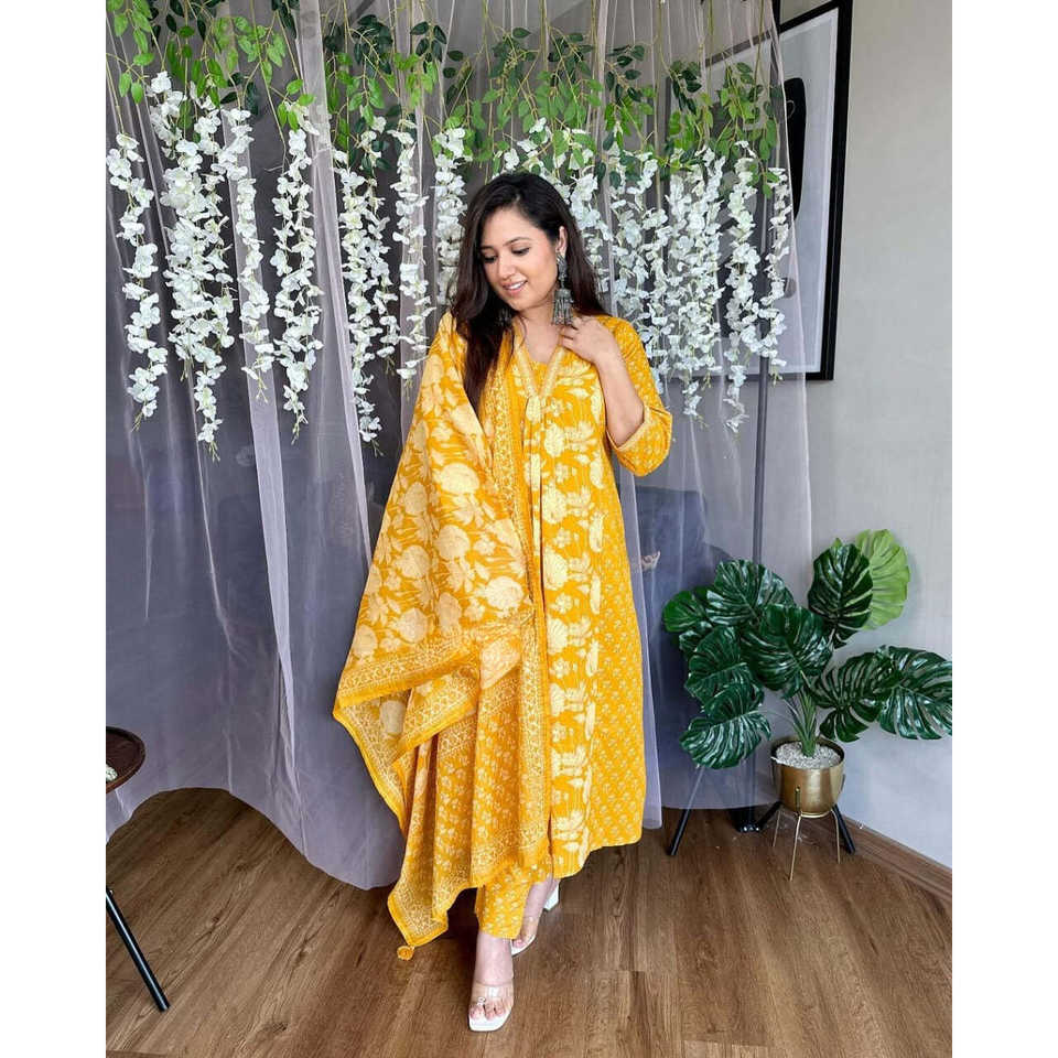 Kurta, กางเกง & dupattaตาข่าย
