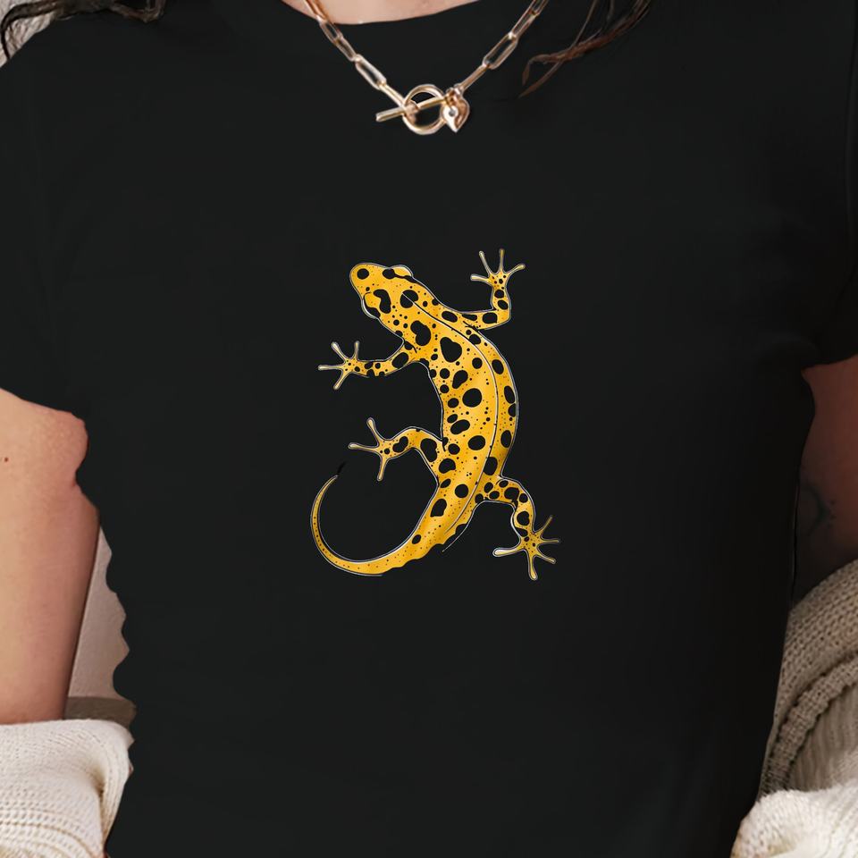 เสื้อยืดสั้นซาลาแมนเดอร์สีเหลืองและสีดำสำหรับผู้หญิงทรงสลิมฟิตพิมพ์ลายแฟชั่น Y2K บนผ้าถัก
