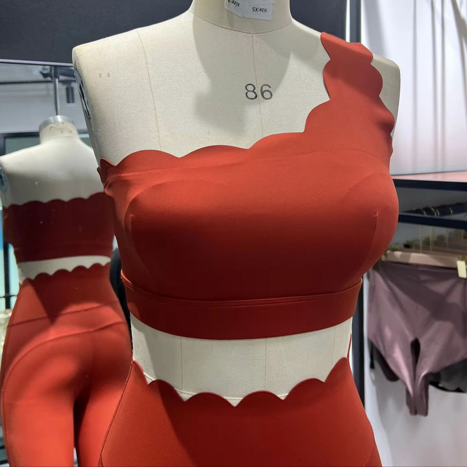 ชุดโยคะผู้หญิง 2 ชิ้น ลายสก็อต แบบสั่งทำพิเศษ แห้งเร็ว เสื้อกล้ามแบบไหล่เดียว กางเกงเลกกิ้งเนื้อนุ่ม เป็นมิตรกับสิ่งแวดล้อม ชุดออกกำลังกาย