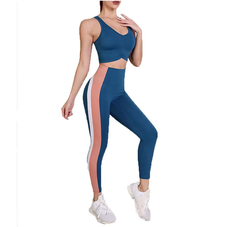 ชุดโยคะผู้หญิง 2 ชิ้น ผ้าเนื้อแน่น ระบายอากาศได้ดี เป็นมิตรกับสิ่งแวดล้อม พร้อมขอบเอวยางยืด ตัวเลือกสกรีนโลโก้ได้
