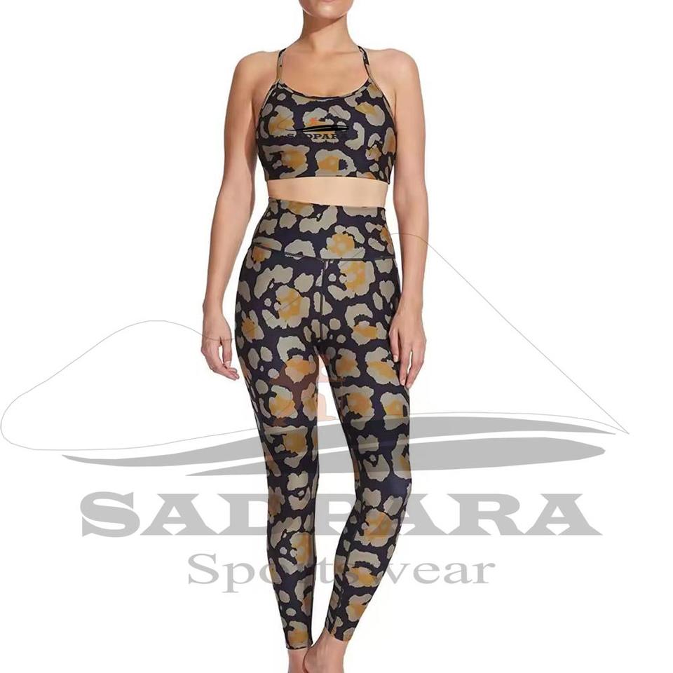 ชุดโยคะสตรีกางเกงเลคกิ้งเอวสูงผ้าฝ้ายและสปอร์ตบราระบายอากาศได้น้ำหนักเบาสีทึบชุดออกกำลังกายขนาดพิเศษ