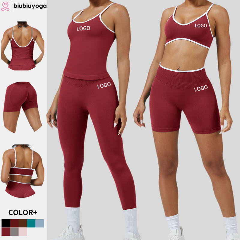 ชุดโยคะผู้หญิงขายส่ง ชุดบอดี้สูทออกกำลังกายเนื้อผ้าบางเบา ระบายอากาศ แห้งเร็ว ผลิตจากผ้าสแปนเด็กซ์/ไนลอน ชุดออกกำลังกายสองชิ้น