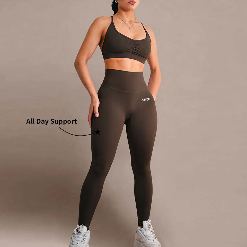 ชุดโยคะผู้หญิงขายส่ง ชุดบอดี้สูทออกกำลังกายเนื้อผ้าบางเบา ระบายอากาศ แห้งเร็ว ผลิตจากผ้าสแปนเด็กซ์/ไนลอน ชุดออกกำลังกายสองชิ้น