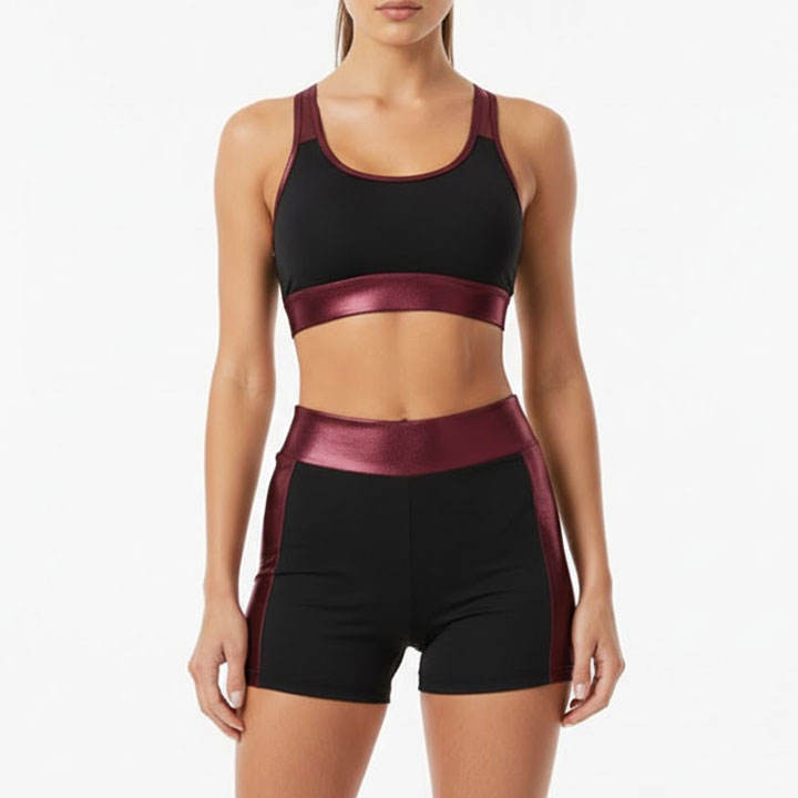 ชุดโยคะผู้หญิง 2 ชิ้น กางเกงขาสั้นเอวสูงและเสื้อชั้นในกีฬา รับสกรีนโลโก้ ชุดออกกำลังกาย