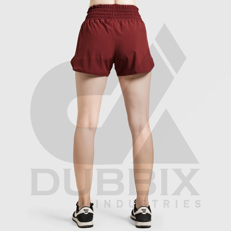 กางเกงขาสั้นโยคะทรงตรงสำหรับผู้หญิง DUBBIX INDUSTRIES ผลิตจากโพลีเอสเตอร์ 100% รับสกรีนโลโก้ ระบายอากาศได้ดี เอวยืดหยุ่น สีพื้น เหมาะสำหรับออกกำลังกาย ฟิตเนส และเล่นกีฬาในยิม