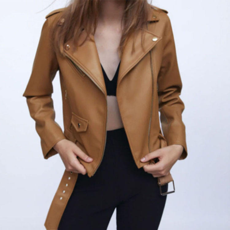 เสื้อโค้ทหนังผู้หญิงแบบซิปด้านหน้า ระบายอากาศได้ดี กันน้ำ เป็นมิตรกับสิ่งแวดล้อม สไตล์สตรีทแวร์ถักนิตติ้ง เหมาะสำหรับฤดูหนาว