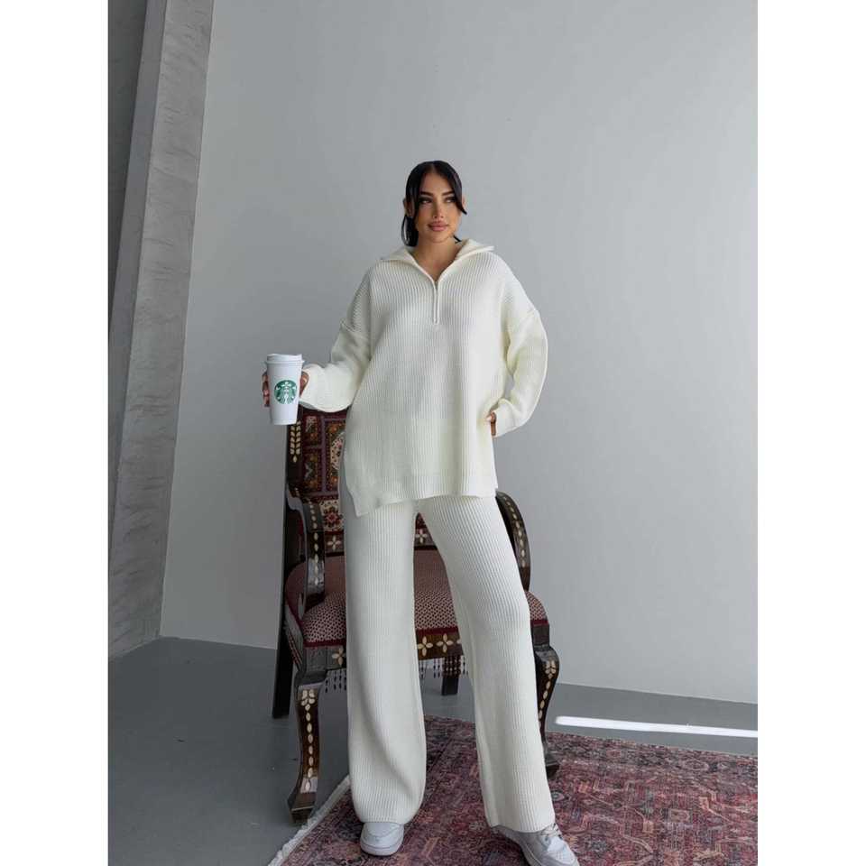 ชุดเสื้อสเวตเตอร์ถักซิปสำหรับผู้หญิง รุ่น 1556