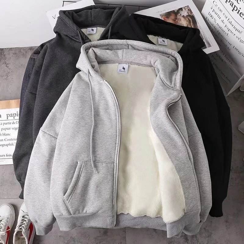 เสื้อมีฮู้ดแบบมีซิปของผู้หญิงเสื้อแจ็คเก็ตมีกระเป๋าผ้าฝ้ายขนาดใหญ่ซักง่าย