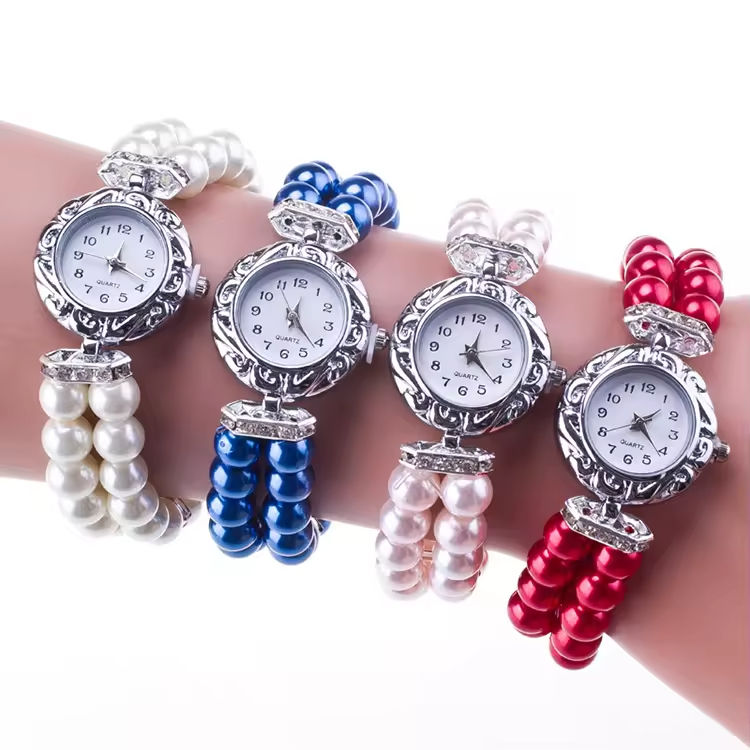 นาฬิกาข้อมือผู้หญิงนาฬิกาควอตซ์แฟชั่นนักเรียนนาฬิกาผู้หญิงมุกเทียม