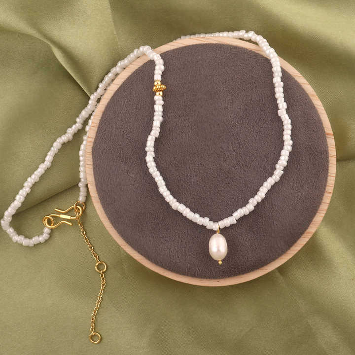 ไข่มุกน้ำจืดลูกปัดแก้วสีขาวหินหลัก