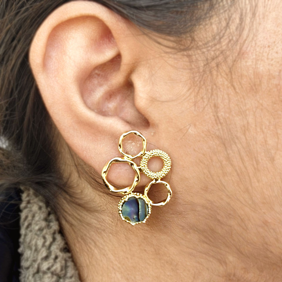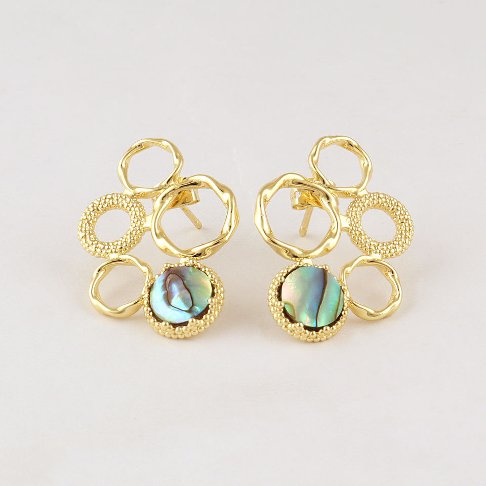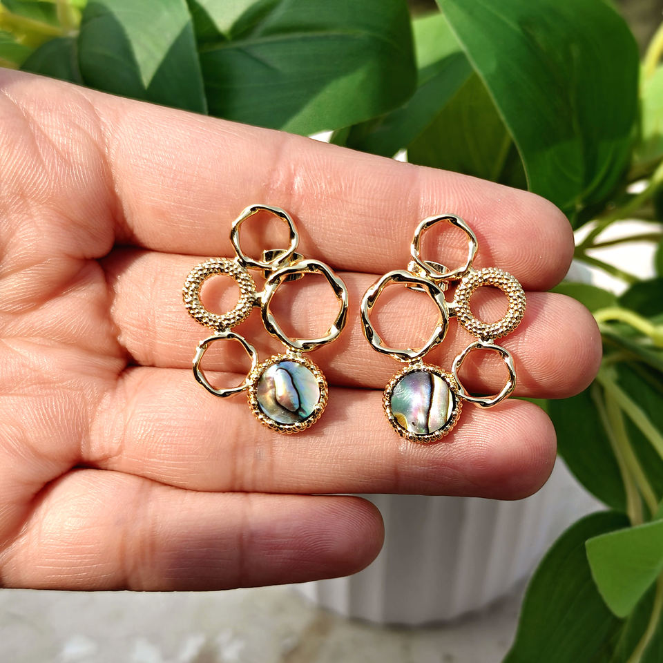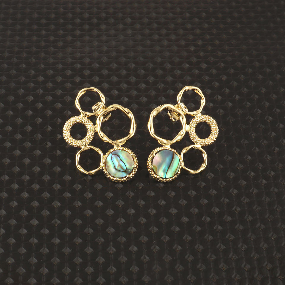 ต่างหูแฟชั่นผู้หญิง ต่างหูเปลือกหอยมุกธรรมชาติทรงเรขาคณิต ต่างหูแบบห้อยชุบทอง ดีไซน์เนอร์ ต่างหูทรงกลมแบบห้อย
