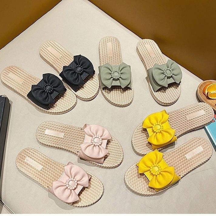 รองเท้าแตะพื้นนุ่มสำหรับผู้หญิง, รองเท้าส้นแบนสวมใส่สบายกันลื่นลายดอกไม้ขนาดใหญ่