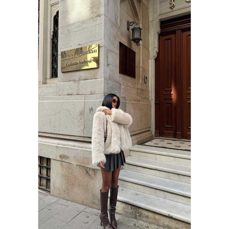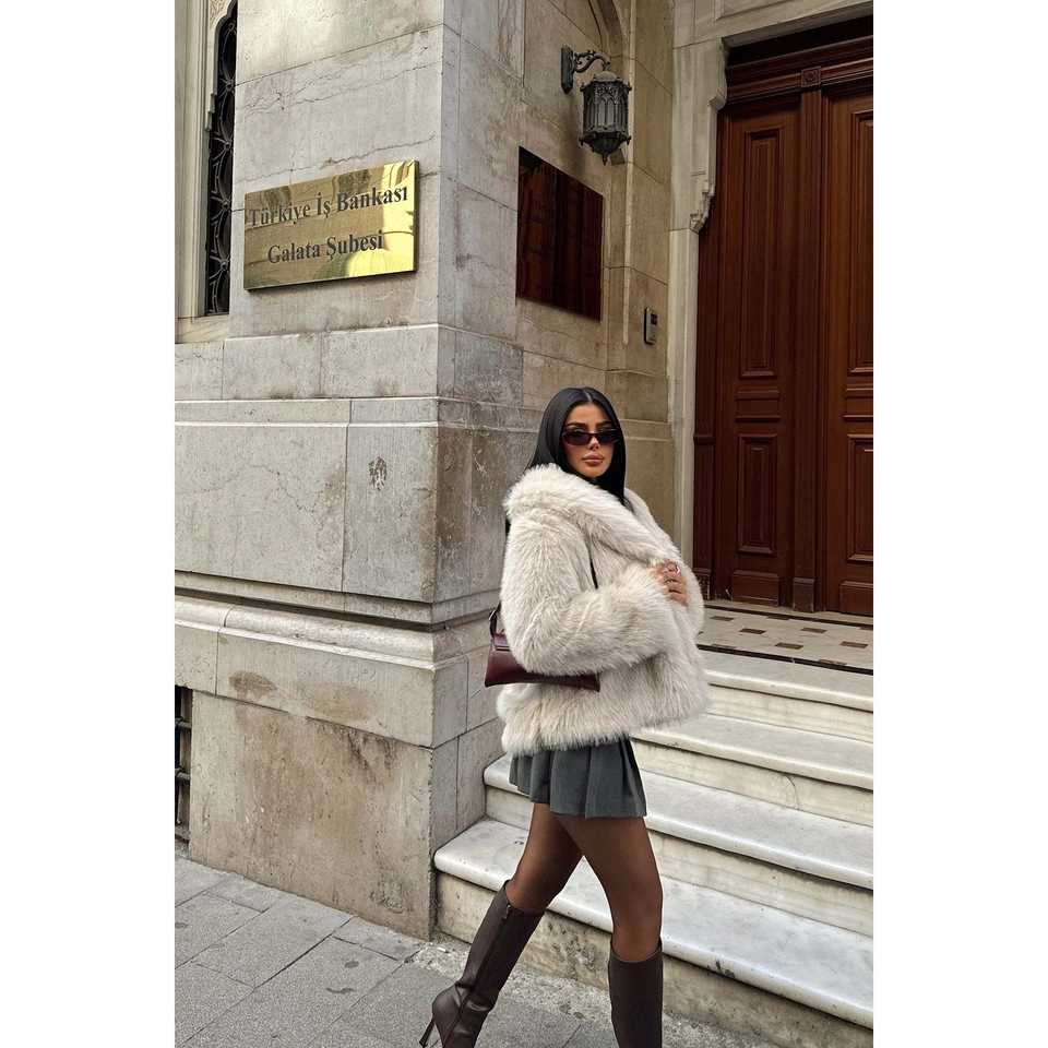 เสื้อโค้ทขนเฟอร์เทียมรุฟิน่าสีครีมสำหรับผู้หญิง