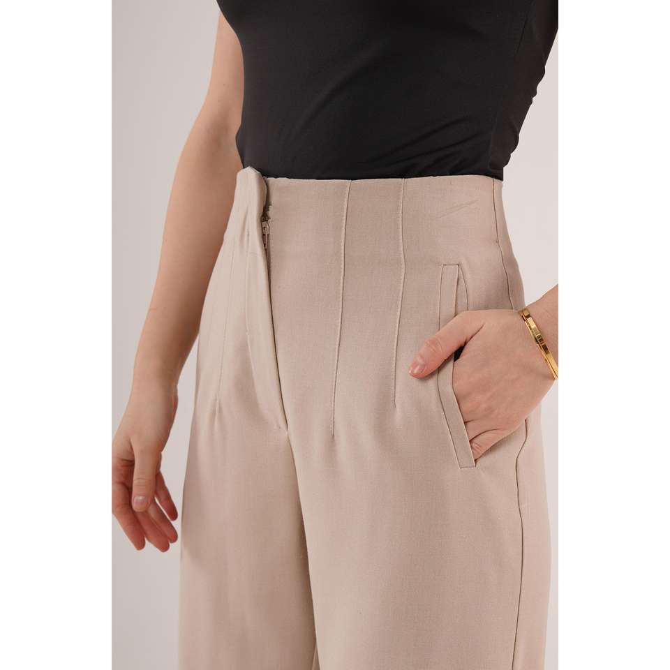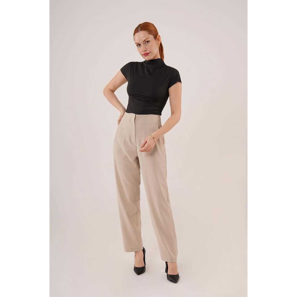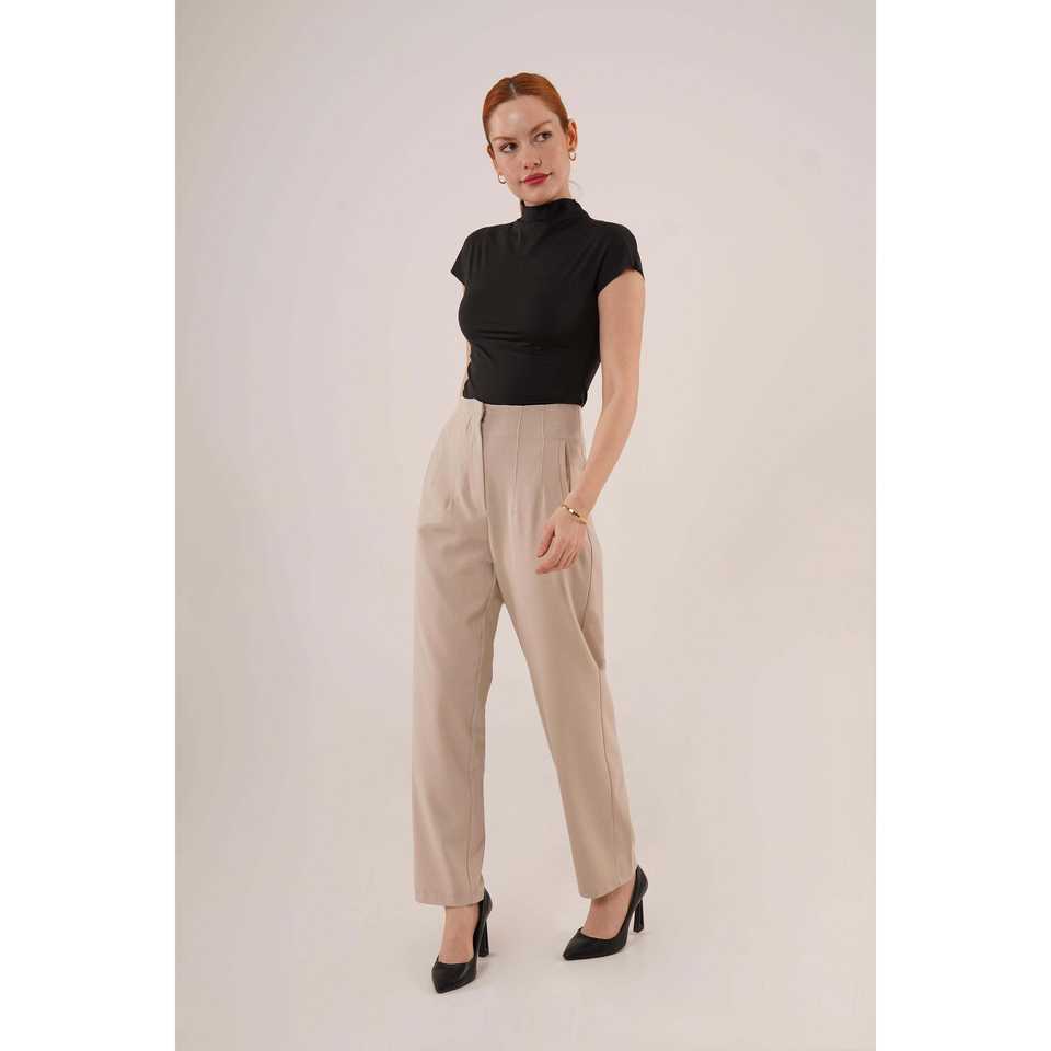 กางเกงขายาวสีครีมสำหรับผู้หญิง ดีไซน์ดับเบิ้ลดาร์ทส์ สินค้าขายส่ง