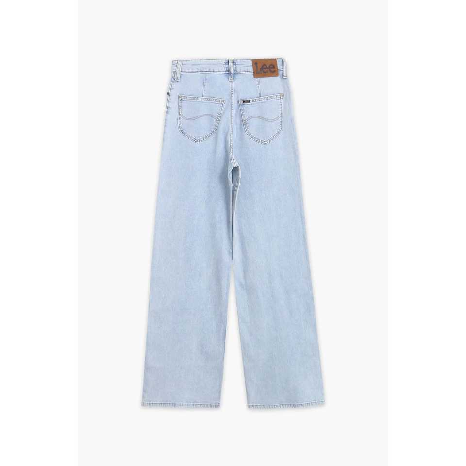 กางเกงยีนส์สีฟ้าท้องฟ้าสำหรับผู้หญิงกางเกงยีนส์วินเทจขากว้างทรงหลวมระบายอากาศได้ดีพิมพ์ลายเอวกลางแบบลำลอง
