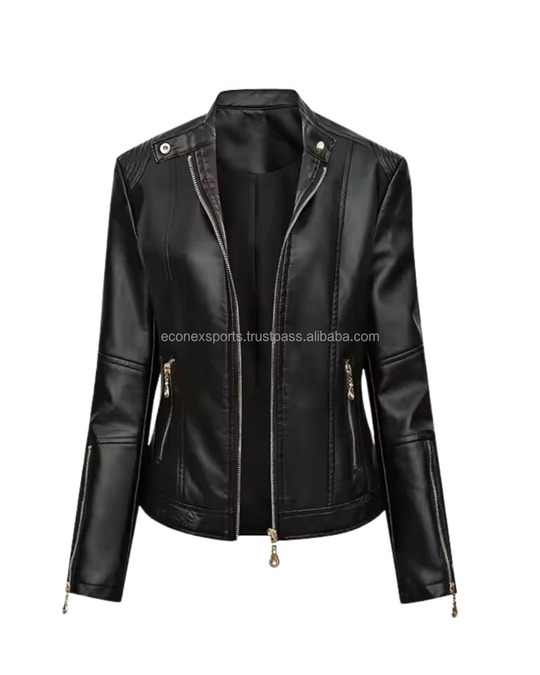 แจ็กเก็ตหนังแท้สำหรับผู้หญิงแจ็คเก็ตไบเกอร์ทรงสลิมฟิตผลิตจากโรงงานโดยตรง