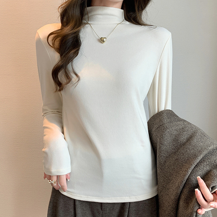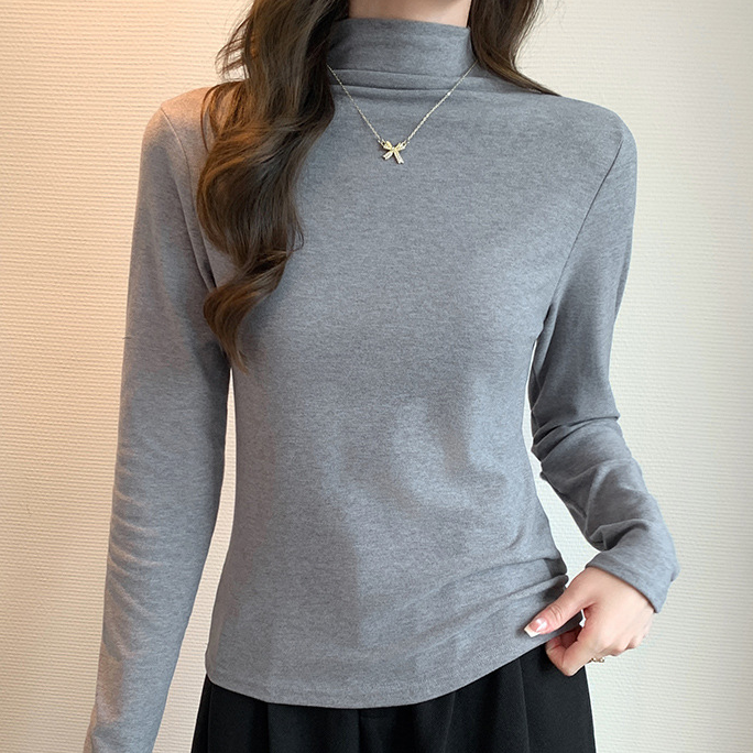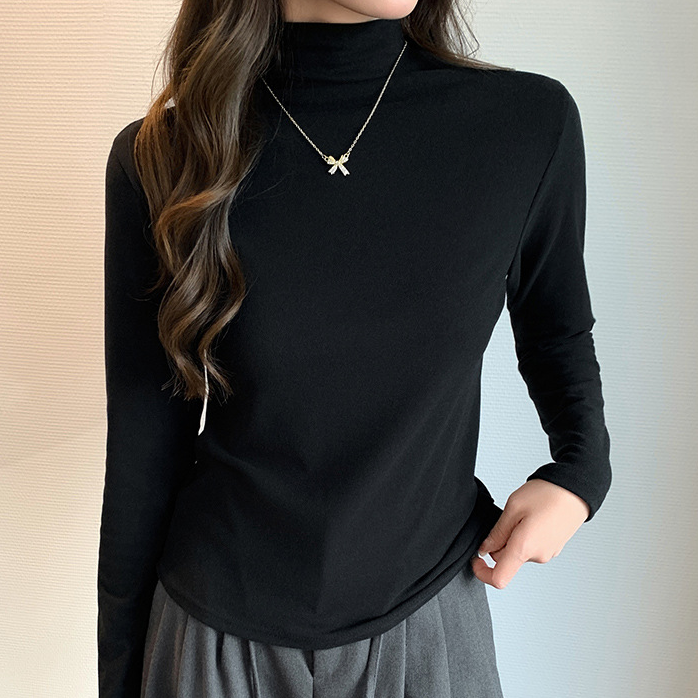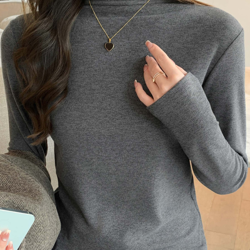 เสื้อยืดแขนยาวคอสูงของผู้หญิงทรงสลิมฟิตและเสื้อชั้นในที่ดูสวยขึ้น